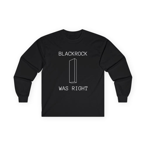 Blackrock 2028 Long Sleeve Tee — 'Blackrock Was Right' Sci‑Fi Graphic Shirt